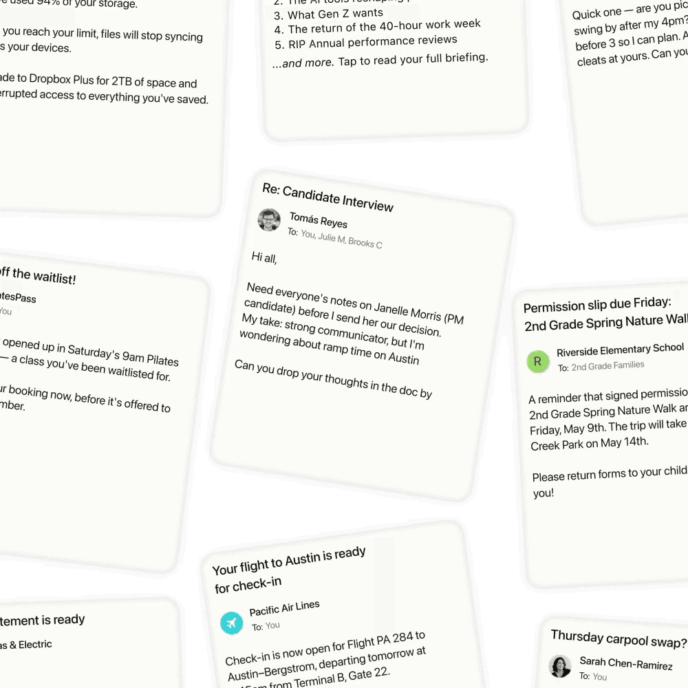 Stay informed, without opening your inbox. Avec sends smart notifications that tell you what’s happening and what to do next.